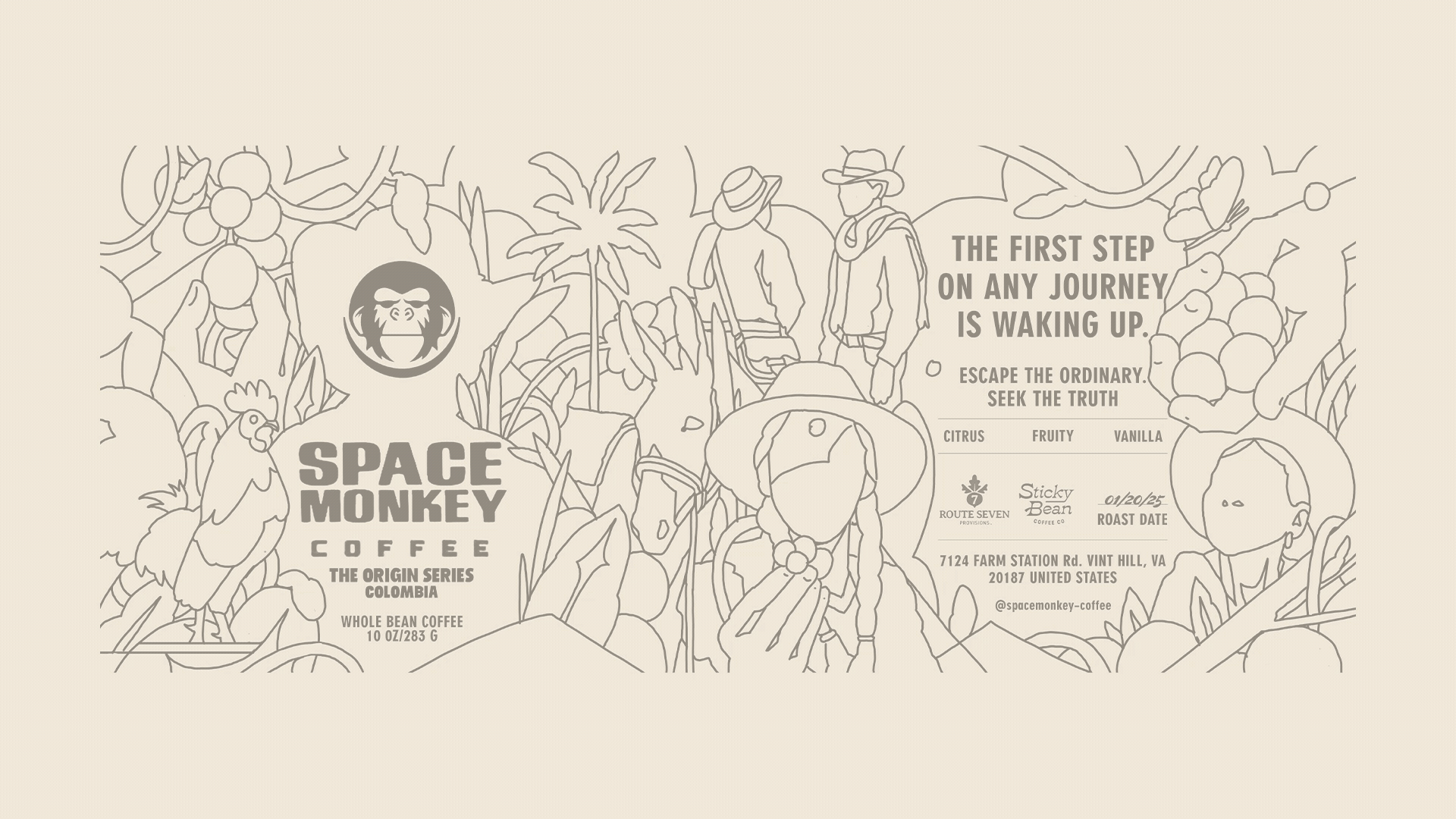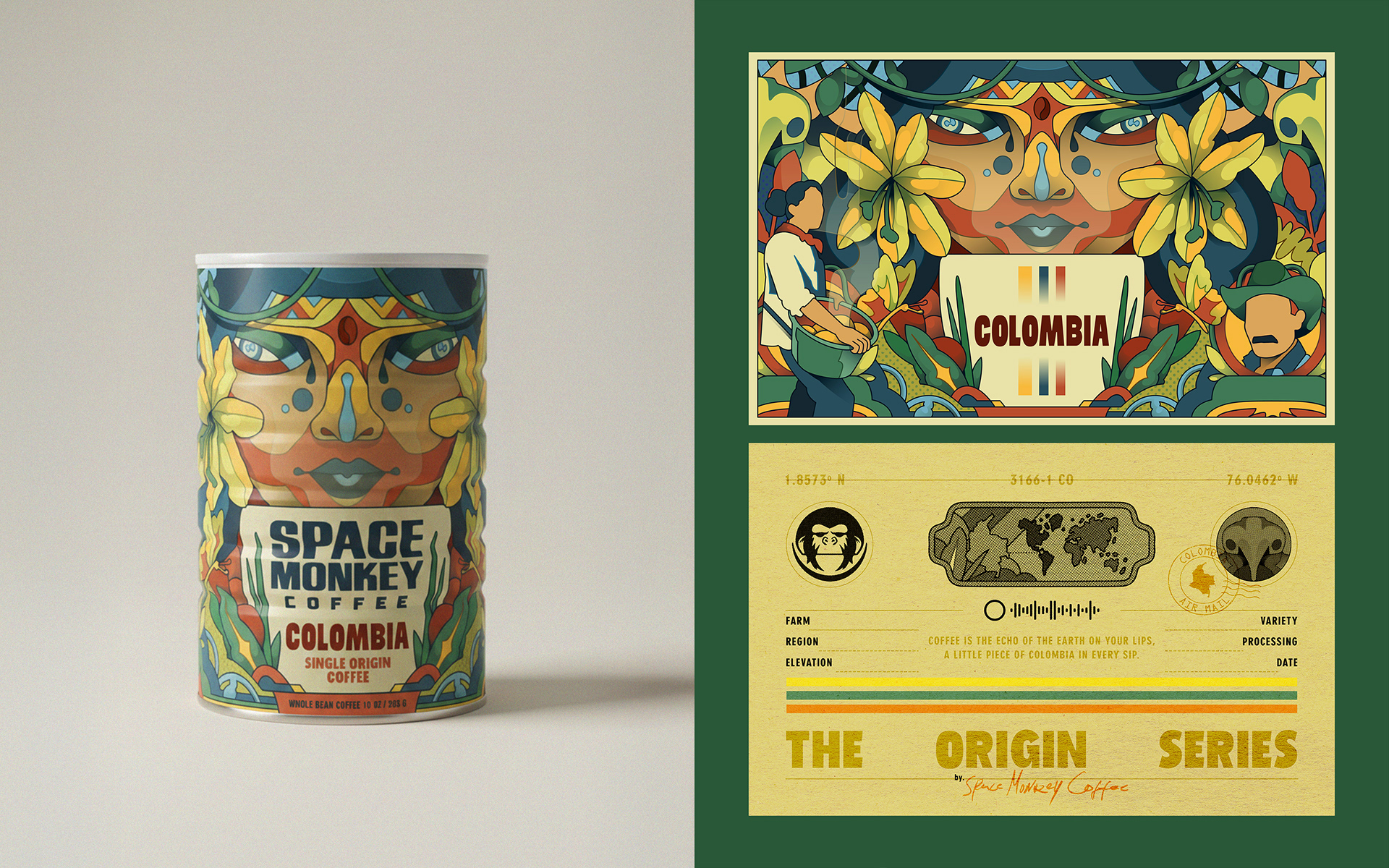 En las tierras altas de Colombia, el café no se cultiva: se hereda de los sueños. Para esta edición de Space Monkey Coffee, la narrativa se sumerge en un mundo de realismo mágico donde una Cacica ancestral custodia el grano como un secreto divino.